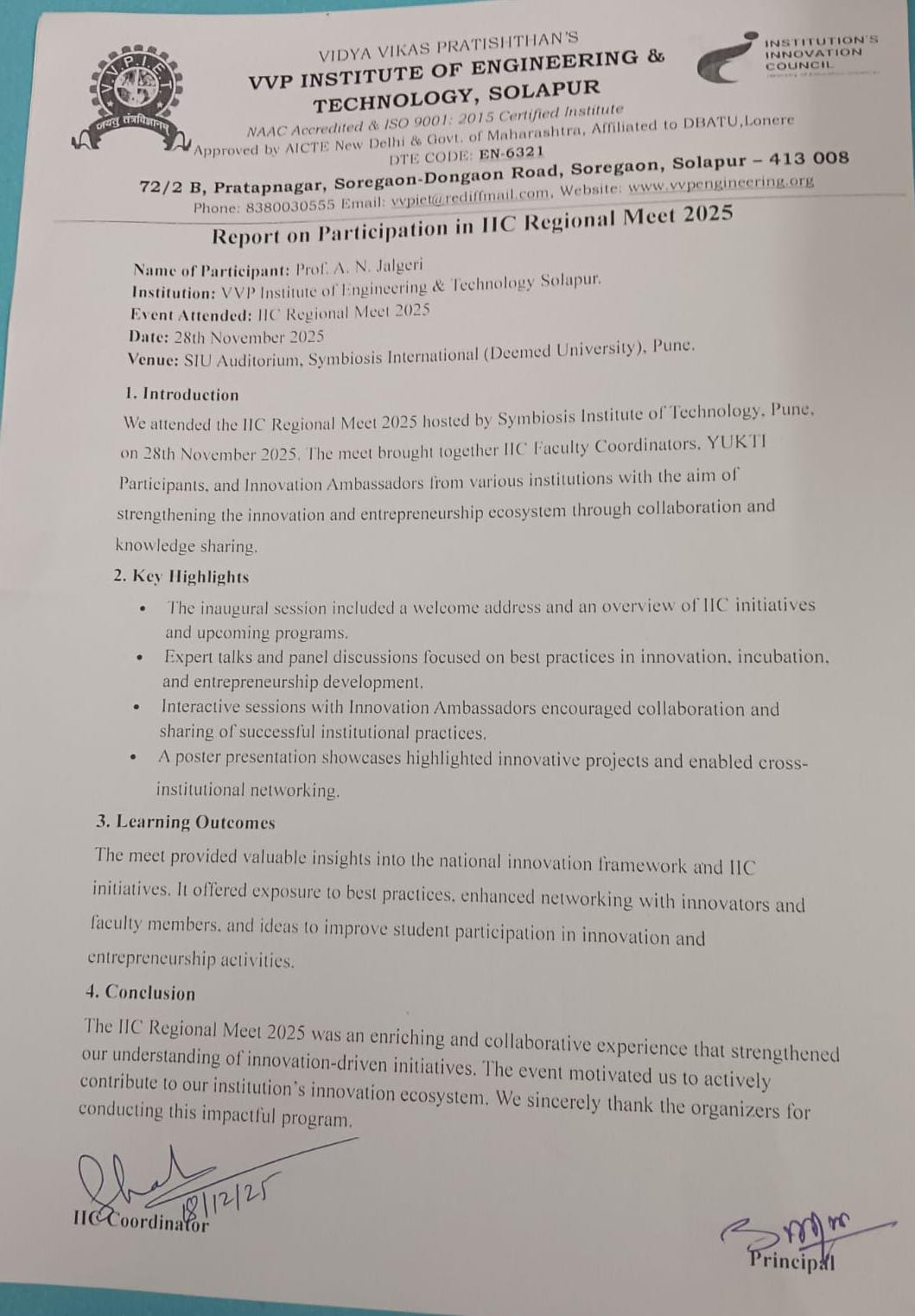 V. V. P. INSTITUTE OF ENGINEERING & TECHNOLOGY, SOLAPUR